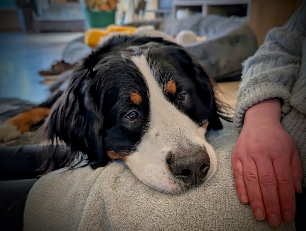 - Waar ligt je hond als jij ergens rustig zit (in de zetel, aan je bureau,…)? Is dat vlakbij jou? Op een korte afstand? Grotere afstand? In contact met jou?